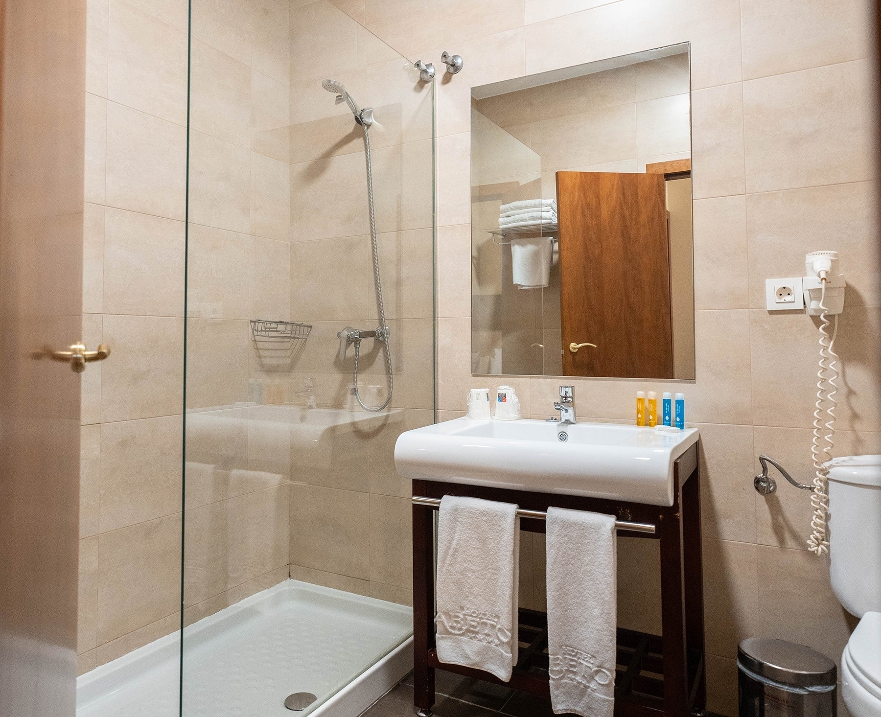 Cada baño está equipado con amenities que no solo cuidan de ti, sino también de nuestro entorno. Nos enorgullece ofrecer productos de alta calidad que respetan la sostenibilidad y miman tu piel.